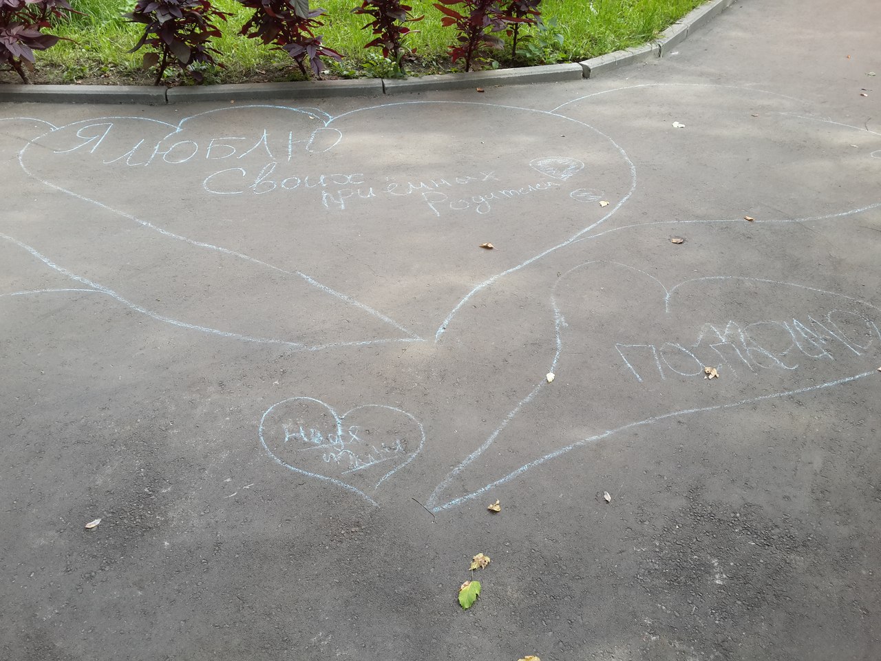 Всем привет! В эту субботу мы ходили к детям, и на асфальте я встретила такую душещипательную надпись,которой не могу с вами не поделиться! Так как на картинке очень плохо видно, дублирую написанное: ""Я люблю своих приёмных родителей? Мама,Папа? от Нади и Дани?"