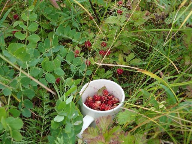 Всем привет! Рассказываю Нам сегодня удалось даже поговорить. Разговаривали мы во время приготовления грибного супа и ловли рыбы. Периодически было плохо слышно, но не из-за связи, а из-за хохота У них все в порядке! Они уже начали двигаться в обратный путь, т. к. путь туда у них занял больше времени, чем они рассчитывали. Но как они сказали, они везде добрались и все посмотрели. В общем на данный момент они прошли около 250 км: 220 туда и уже около 30 обратно. По ночам у них около +5. А еще они объедаются "малиной, которая растет в траве". Как они сказали "мы не уверены, что эта ягода съедобная, но она ооочень вкусная!"  Однако спешу вас успокоить, судя по всему они едят княженику (ее еще называют мумура  ). Мы ее встречали, когда ходили на Унежму. Она действительно похожа на малину и оооочень вкусная! На картинке она  На сегодня вроде бы все новости. Ждем завтра. Ps Игорь, Леша и Ульяна сказали, что все тебе отправили смсками из поезда. Там про все матчи по твоему списку до 25.08.  Во как!
