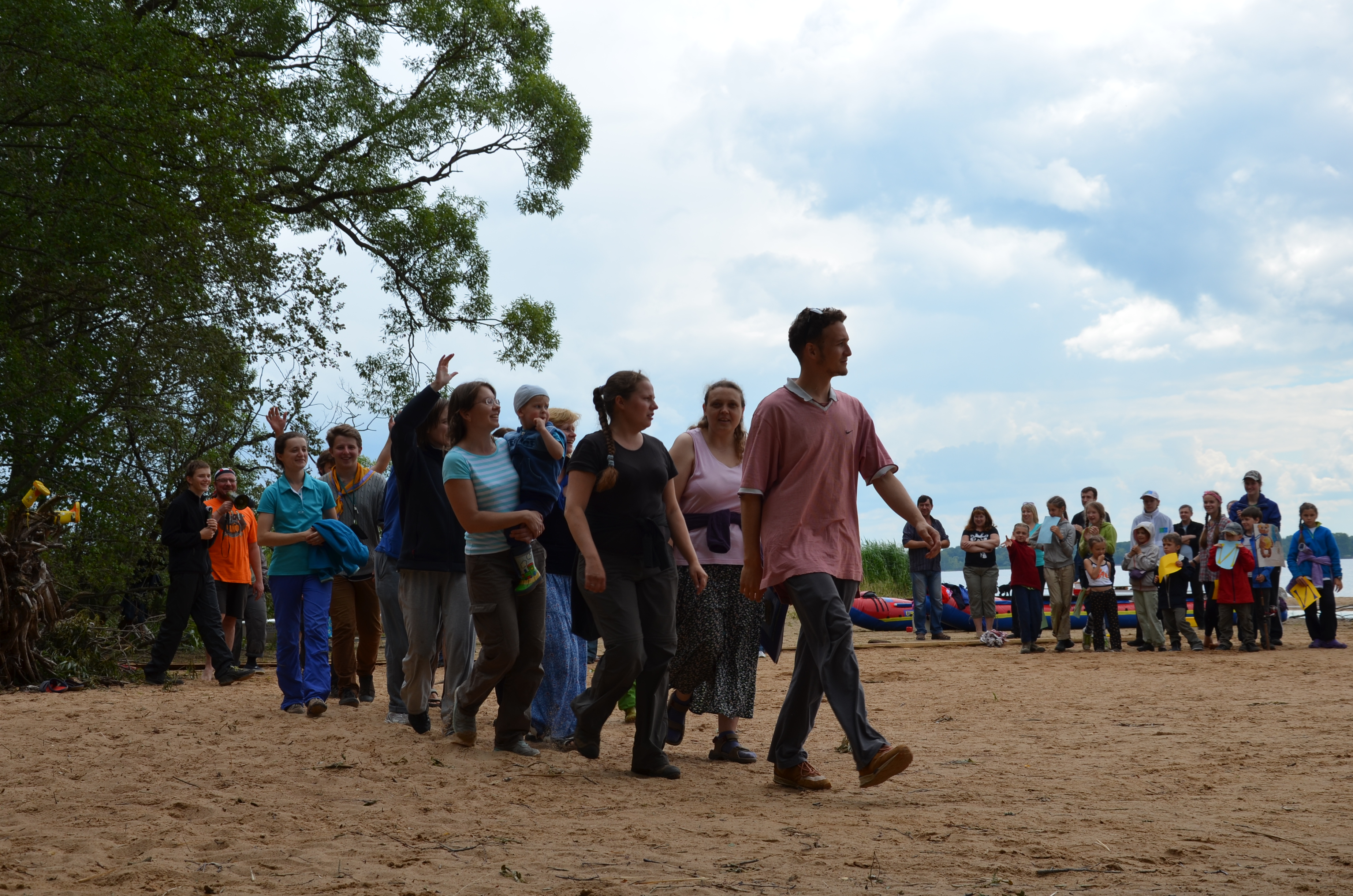 Вчера день выдался непростой. С утра потрясающее солнце, мы НАКУПАЛИСЬ!!! Играли в «захват флага», думали после обеда пляжное настроение продолжится. Не тут-то было... Огромная туча, а перед ней ветер сильнейшего порыва. У нас поднимались байды и Мева (без паруса) перевернулась. Выбежали с детьми на берег, на песок. Я видела сгруппировавшихся мобилизованных старших, мгновенно сформировавших полумесяц спин, закрывающих собой младших. Такая мгновенно выросшая надежная стена... Пять минут... каких-то несколько серьезных минут и все стихло, пошел дождь. Мы всем лагерем уместились под тентом Согласия, развели костер и пели песни. Все успокоились и на вечернем огоньке делились впечатлениями ужк как о приключении. Сегодня половина народа ушла в Краеведческий музей - ждем их с новостями! Сегодня тихо, спокойно, уютно, народ улыбается. Обнимаем! Мы ВМЕСТЕ. Здесь немного фоток https://plus.google.com/u/2/photos/118250863199356255380/albums/6031824538028228481