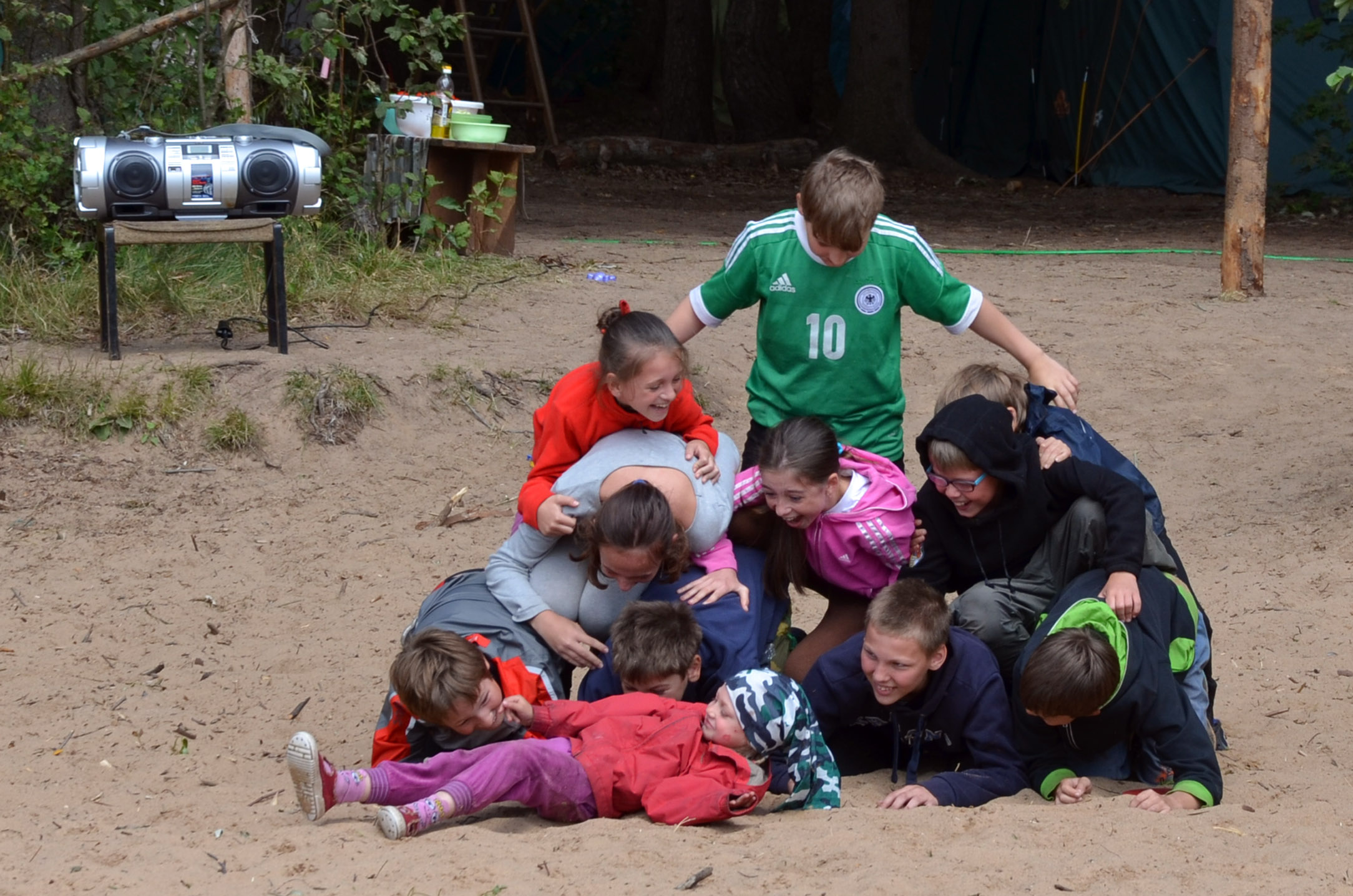 Вот здесь можно посмотреть фотки с наших "Лесных олимпийских игр": https://plus.google.com/u/2/photos/118250863199356255380/albums/6034843964165717713А еще в этом году в нашем лагере появилось еще одно НОВОЕ клевое место - веревочный городок. Его создали и работали там с детьми взрослые, имеющие навыки лазания по канатам, веревкам и проч., это Дмитрий Владимирович Дорохов, и папа из Ладошки Марат Исхаков. Наш городок очень популярен!! Мы уже дважды (в 1 смене и сегодня) проводили там соревнования. И радостные, старающиеся лица можно пронаблюдать на фото: https://plus.google.com/u/2/photos/118250863199356255380/albums/6034853315639959201Ну, и очень-преочень хочется сказать спасибо нашим малышам в лагере, нашей Ладошечке. Без них, ползающих, влезающих во все углы, смеющихся, дерущихся, вечно в мокрых носках, лагерь был бы не нашим лагерем. Посмотрите, какие они классные, и как нам вместе хорошо: https://plus.google.com/u/2/photos/118250863199356255380/albums/6034864509305388721