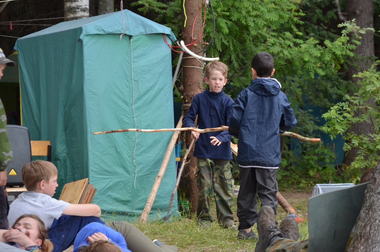 Привет всем, ожидающим новости с берега Харловского залива! Нас погода пока балует. Дождик сегодня был, но весьма щадящий и недолго, мы даже не особо прерывались в делах )) Пока дни идут очень активные и насыщенные. Ребята, особенно те, кто приехал впервые, удивляются, как это мы столько делаем САМИ. И строим, и готовим, и еще находим время на всякие интересные занятия.