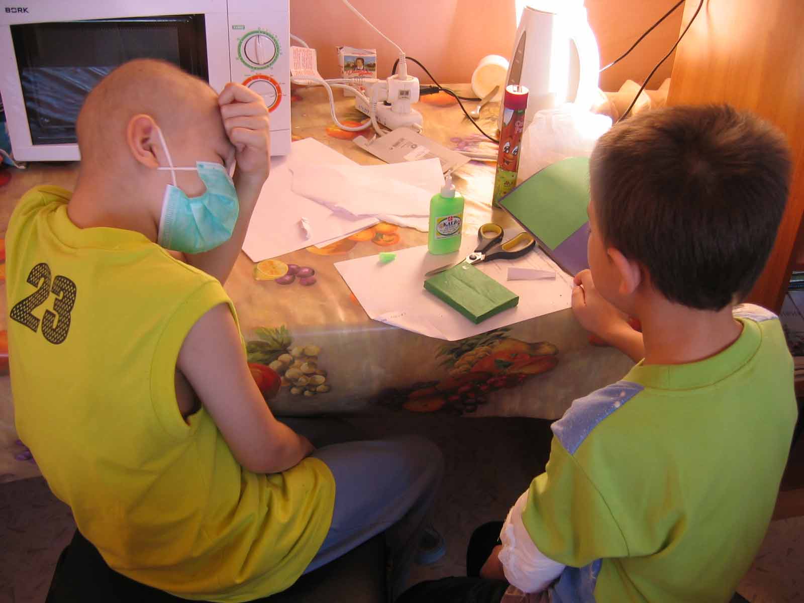 Мы так увлеченно занимались танкостроением, что совсем забывали, о том, что находимся в больнице. Вдруг разговор зашёл о том, кто в палате постоянно, а кто приезжает на консультации, мама Марина спросила у Тимура: "Ты сейчас на химии?". А он как ни в чём ни бывало: "Цитозар" струйно". Мальчишке от силы лет 8, а он в таких специальных медицинских вещах разбирается...Открытый, общительный и весёлый парнишка...И мне сразу сильно-сильно захотелось, чтобы выздоровел он и все остальные поскорее и чтобы поскорее забыли, что такое "Цитозар" струйно".