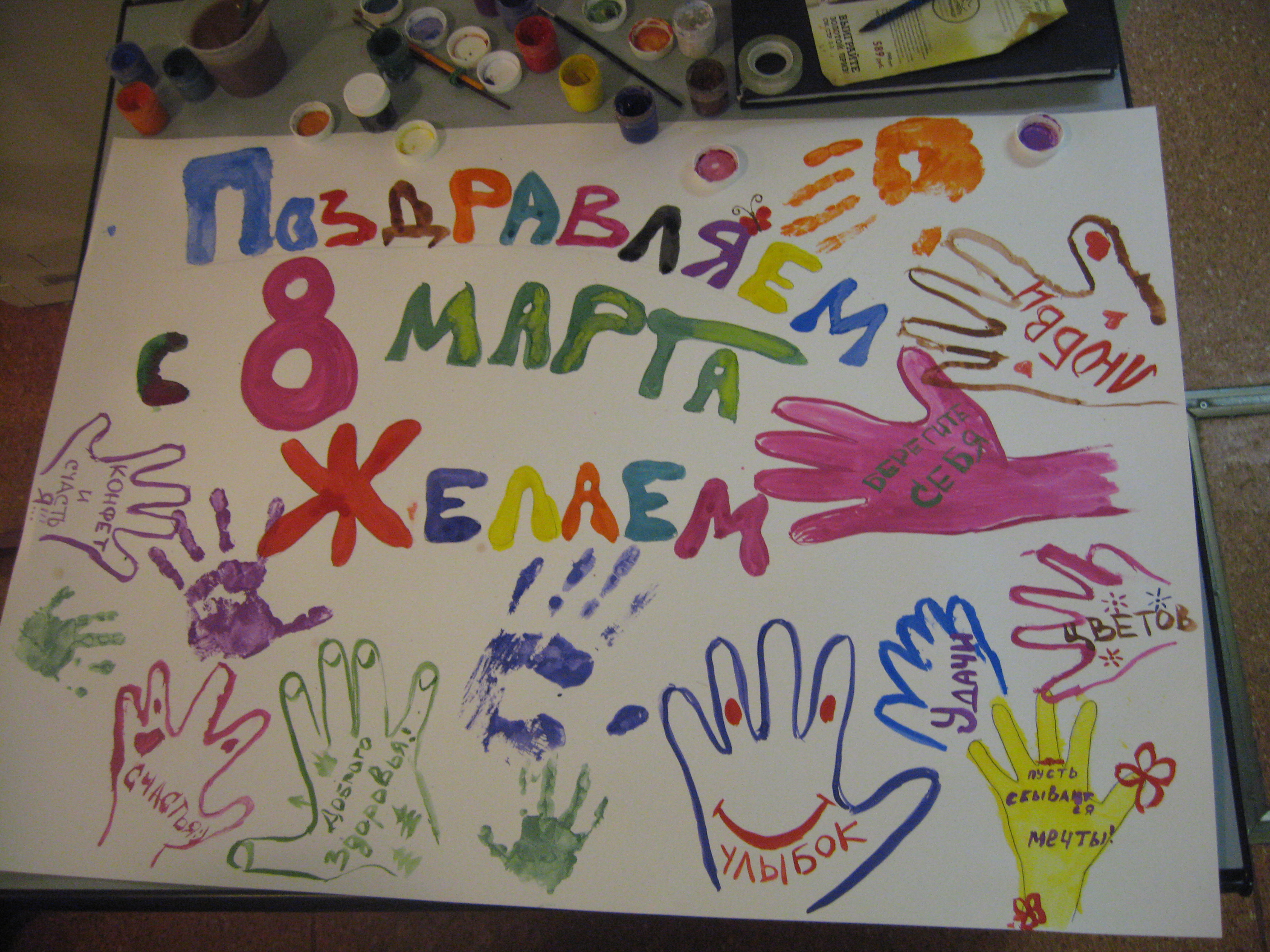 Итак, пришли мы к ребятам и сразу стали делать цветы для своих мам. У всех получалось по-разному, ведь всё зависит от хаоактера и подхода: у Тёмы с мамой получился бОООльшой василёк, у Димы старательно и кропотливо получился подсолнух, Алина делала розу. А потом у нас ещё и получились чудесные весенние тюльпаны, благодаря Тане, нашей гогстье и помошнице в этот раз. Ну а в процессе всё говорила: "Мы ещё будем делать поздравительную открытку!" Ребята немного устали и разошлись. "Ну и ладно  ", - подумали мы и решили сделать цветочки для все женщин, девушек и девчонок отделения. Сидим-творим, тут сначала Даша с мамой подошли и спросили про открытку, потом Артём с мамой, и дело пошло! Мы обоводили наши ладошки и писали в них пожелания, получилось очень хорошо. Потом торжественно водрузили открытку на стену и пошли раздавать цветы... Мамы, медсёстры и девчонки улыбались, кто-то застенчиво, кто-то просто радостно. Но к сожалению Фея Времени прилетела к нам и сказала, что уже пора, уже 7 часов, и нам нехватило совсем немножко, чтобы одарить 2-3 мам и саму фею, а ещё повесить шарики.... Ну, ничего, скоро снова среда Мы будем раскрашивать раскраски (О как  ) и делать выставу работ!