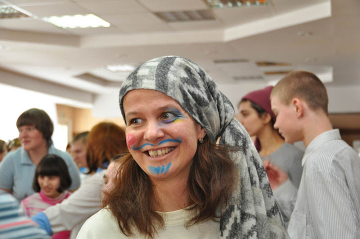 Сегодня мы ездили в Тульскую область,а точнее к детям в Головеньки. Хочется сказать, что день наш начался с плотного-плотного тумана, видимость была довольно плохая...шёл дождь,но когда мы подъехали к зданию детского дома, то выглянуло солнышко, с того момента погода начала налаживаться. Нас встретили очень тепло, накрыли большой стол с горой всяких вкусностей, что не могло не порадовать) А еще там было множество чашек, видимо они рассчитывали человек на 30, а нас было,если не ошибаюсь 12. Но малочисленный состав ничуть не помешал состояться Празднику! Так получилось,что наш рулевой забыла все костюмы, поэтому когда мы начали смотреть в сумках,то обнаружили,что нет ничего,кроме огромных чёрных сапог. Позже на обсуждении я услышала,что в этот момент некоторых посетили панические мысли..но лично я знала,что мы справимся) В общем, немного пообсуждав, решили мы быть пиратами. Сценическое перевоплощение было мгновенным и как ни странно довольно успешным. Все дамы сделали причёску "аля-Баба яга" на голове и завязали сверху платками.(Кстати, это мне понравилось быть лохматой) Еще мы одели по одному сапогу на ноги, как могли засучили джинсы и кофты..Сделали синяки под глазами специальными маркерами для раскрашивания(их нам любезно предоставили работники детского дома) и размулевали лицо, кто во что горазд ...Вид у нас был мягко говоря странноватый...возможно в психушке нас приняли бы за своих) Перед тем как мы собственно начали играть с ребятами они устроили нам небольшой концерт. Девчёнки очень мило танцевали под зажигательную песню..там было что-то такое: "С днём рождения-ия-ия поздравляю тебя, с днём рождения!", мальчишки сыграли на музыкальных инструментах русскую народную- "Яблочко" и даже станцевали под неё. Видно было, что персонал очень старается показать нам своих воспитанников в самом лучшем свете. А значит им далеко не безразлична судьба этих детей.. Потом вышли мы(пираты), объявили что нам надо открыть коробочки, чтобы найти какое-то загадочное сокровище.. Ах, да..кстати, когда мы входили такие все лохматые и странные ребята хлопали в ладоши и очень смеялись))Ахах,да я и сама бы посмеялась,если бы могла смотреть со стороны. И у нас был пират-повар(Оля Алымова), на шее у неё висели сушки, в руках был половник и она предложила детям варить суп из морковки, которую они должны были собрать в коробку. Так вот, каждую игру мы открывали по одной коробочке,при этом выбирая "номинанта" из зала, который будет помогать в этом деле..И одного мальчишку взяли в свою пиратскую банду,боевое крещение он прошёл прямо на месте и очень органично влился в нашу компашку) Мне понравилась маленькая девочка с ДЦП-Яна Волкова. Когда мы танцевали утят, то почти всех ходячих вытащили в центр,а она тихо сидела в коляске смотрела на меня. Я решила взять её с собой, мы с Яной танцевали вместе со всеми, и она была так безумно рада!!!Она очень позитивная, улыбка просто от одного уха до другого! Ей это всё очень нравилось,а меня радовало,что ей это нравится) Немного поиграв, мы наконец раскрыли последнюю коробку с сокровищем. А потом пошли фотографироваться) Дети, по-моему, были в восторге от всего: от нашего внешнего вида, от игр, от приятных слов, и в первую очередь от того, что мы приехали)В общем экспромт удался на славу!)Ура!Они звали нас ещё, и думаю мы приедем)
