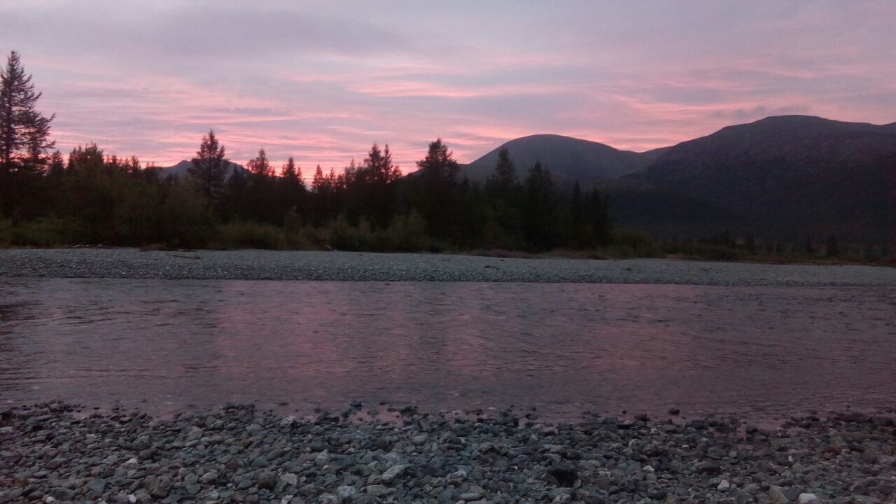 Всем привет! Сегодня утром звонили наши, «отчитывались» за вчерашний день. У них там белые ночи, поэтому они гребут допоздна – часов до 10 вечера, потом ещё обустраивают стоянку, поэтому время созвона получается слишком поздним – вот и решили перенести созвон на утро. Сегодня ловил Мегафон, поэтому рассказ будет более подробным. За вчерашний день пройдено около 20 км. Устали, но усталость эта приятная. Стоянка была на острове – река разделилась на 2 рукава, а они встали посерединке. Идут по реке Собь на двух катамаранах – побольше и поменьше. Большой катамаран цепляет дно и садится на каждую мель, тогда экипаж спрыгивает в воду и толкает свою «баржу». Экипаж же маленького катамарана занимается, как они сами говорят, «дзен-туризмом», на мелях только изредка подталкивая ножками своё плавсредство. Кстати, без фанеры на большом катамаране оказалось очень даже ничего – там есть пвх-шное «дно», плюс сверху они привязывают рюкзаки, на которых, собст-но и сидят. Дно у реки каменистое, вода прозрачная, иногда даже бирюзового оттенка. На мелях течение побыстрее, в глубоких местах – меееедленное. Поэтому, когда катамаран выходит с мелководья на глубину, кажется, что это какой-то аппарат, выходящий в открытый космос – он так неторопливо выплывает, а под ним метров пять прозрачной бирюзовой толщи воды... Вчера весь день шёл дождь – то мелкий, то посильнее. Ребята немного подмокли, но ничего серьёзного не вымочили. Несмотря на это у них не очень холодно – плывут в основном в термобелье+непромокашках. Ну и, конечно, куда без бахил?  Без них катамаран не вытолкать. Говорят, вокруг красотенюшка неимоверная! Говорят, гребём-гребём, а потом какой-нибудь поворот реки – выплываем из-за него и все перестают грести – любуются открывшимся видом. И тишинааааа… Грибов нету совсем. Зато есть голубика и вороника. Кусты голубики мааааахонькие – суровые северные, а вот ягоды на них обычного размера, вовсе не суровые, и кусты ими прямо обсыпаны! Рассказали как подплыли к подступавшей почти вплотную к реке горе. Гора не скалистая, зелёненькая такая, но довольно внушительных размеров и крутизны. Сделали привал. Пошли к горе. Перед горой – голубичная поляна и маленькое озерцо – где-то 100х100м. некоторые полезли на гору. Выше всех залез Андрей, начал кричать оттуда «Я тут! Я залез выше всех!», тогда смогли его разглядеть – он смотрелся на горе как муравьишка, только по голосу его и нашли  . И тут на гору наползло маленькое низкое облачко – и «муравьишку» накрыло им, остался только голос «я здесь! я потрогал руками туман!» А ещё Вова с Женей поймали 3-х рыбок – хариусов. А ещё они купались сегодня утром (за полярным кругом, между прочим!) Вот. Сегодня они планируют доплыть до нас.пункта Харп (это около 10км), а дальше, скорее всего поставят на катамараны двигатели и пойдут дальше по Оби. Сборы со стоянки утром долгие: занимают 4-5 часов, тк надо всё заново перепаковать - все гермомешки и всё своё барахлишко и привязать к катамаранам. Так что белые ночи нашим очень даже помогают – можно плыть дольше. Они передали всем-всем большой полярный привет и обнимают нас всех. Такие вот пироги. До следующего сеанса связи!
